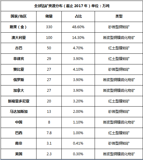 众所周知,钴资源主要以刚果(金)为主,古巴澳大利亚等国家次之。仅刚果(金)就占据全球66%。但是,刚果(金)地区政局动荡,中国等其他国家的钴矿资源稀缺,供需不稳,致使钴的价格一直处于飙升状态。