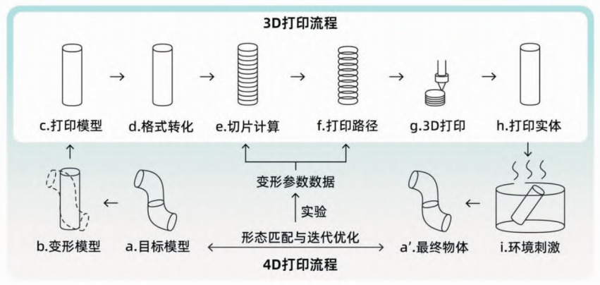 与3D打印相同,4D打印是一种集材料科学、机械科学以及计算机科学等诸多学科高度交叉融合的先进制造技术。但又与3D打印不同,4D打印是一种具备动态演变能力的智能制造技术,是在3D打印基础上结合智能材料与智能结构设计,针对制造产品的形态、性能和功能方面的进一步发展。