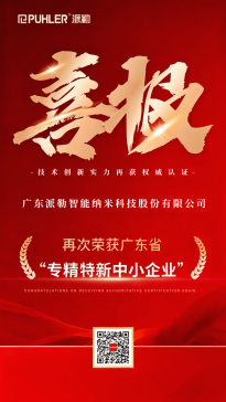 广东派勒智能纳米科技股份有限公司于2016年01月28日收到广东省高新技术企业协会颁发的广东省高新技术产品证书,本公司的"纳米级大流量棒销式砂磨机”以及“全尺寸动态分离纳米研磨机"2015年被认定为“广东省高新技术产品”。该认定有效期:三年;批准文号:粤高企协【2016】1号。