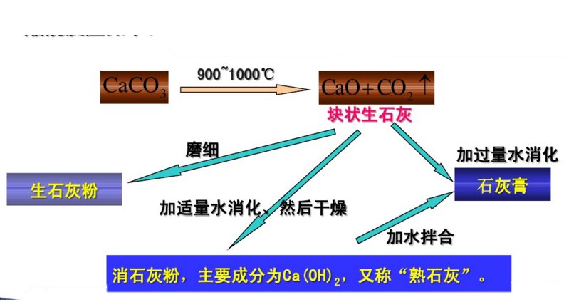 石灰石是碳酸盐矿物,经过一定温度的煅烧,碳酸钙、碳酸镁等被分解,放出二氧化碳(CO2),煅烧后的石灰石主要成分是氧化钙,反应方程式为: