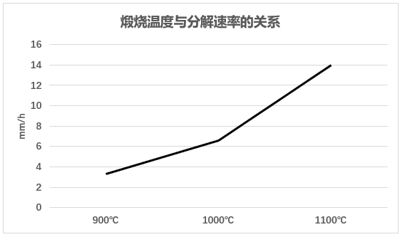 石灰石煅烧速度与温度有极大关系。在常压下,石灰石的分解温度为898℃,当温度大于925℃之后才迅速分解。当煅烧温度为900℃时,石灰石分解速度为3.3mm/h;1000℃为6.6mm/h; 1100℃为14mm/h。由此可见,提高煅烧温度,可以加速石灰石的分解。但是当煅烧温度大于1100℃时,容易出现过烧,石灰晶粒迅速增大、石灰活性变差、消化时间增长,产品质量降低。因此,在实际生产中煅烧温度应控制在1050℃左右。