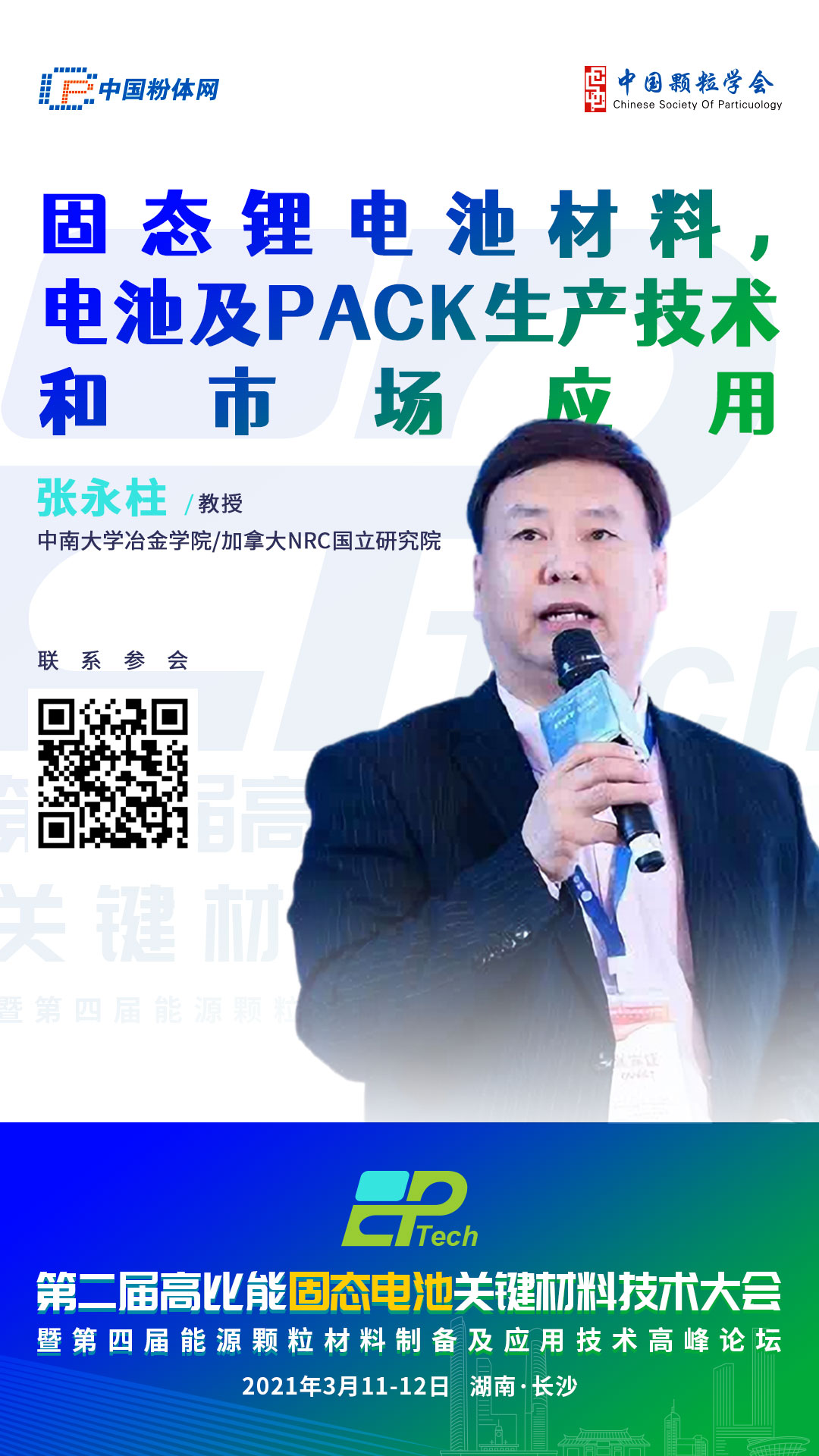 2021年3月11-12日,由中国粉体网、中国颗粒学会能源颗粒材料专委会主办,长沙矿冶研究院先进材料研究所协办的第二届高比能固态电池关键材料技术大会将在长沙吉美国际会展酒店隆重举行,届时,张永柱教授将带来报告《固态锂电池材料,电池及PACK生产技术和市场应用》,与参会嘉宾分享相关研究成果。