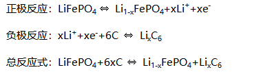 锂离子电池电化学反应方程式如下(以磷酸铁锂为例):