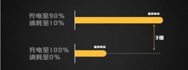 根据研究证明,目前的三元锂电池,常温状态下浅充浅放(10-90%的循环)的循环寿命,是满充满放(0-100%)的3倍以上。锂电池又怕“身体被掏空”,那我们用车时,还有10%就去充电,充到90%就停,这样锂电池寿命也可以大幅延长。