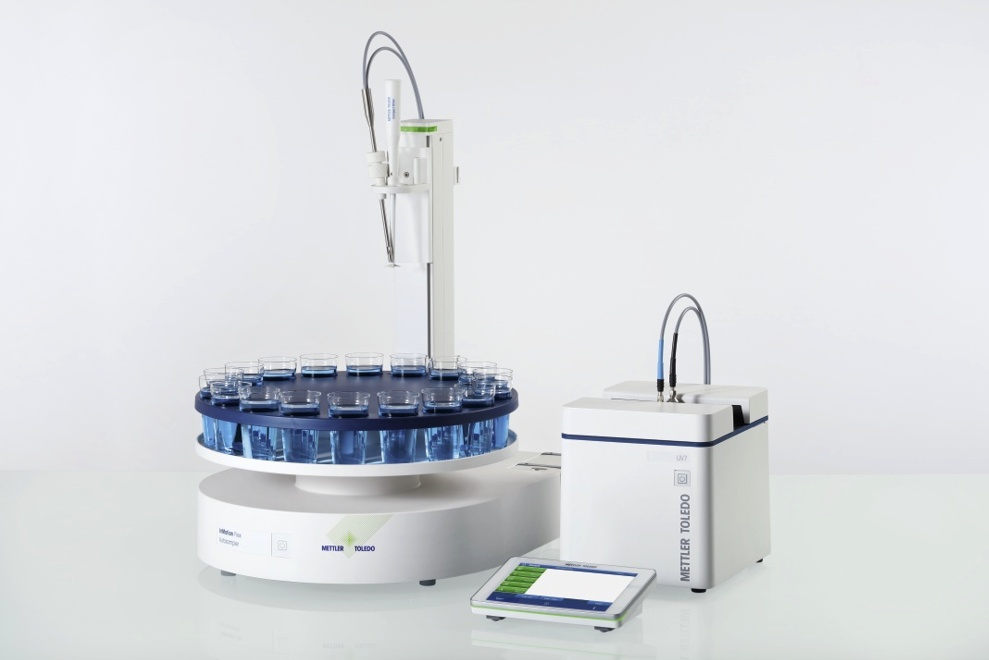 • 样品从滴定杯中转移至仪器上的流通池中进行检测;