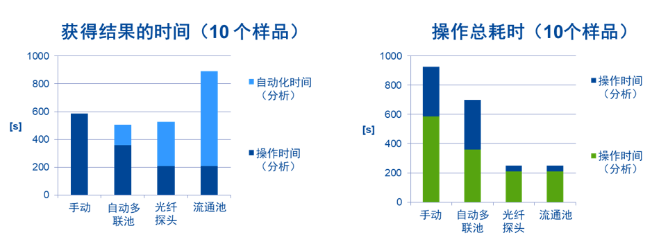 UV/VIS自动化解决方案和手动操作相比,显示出了不同的优势。使用自动化测量可大幅提高紫外可见分光光度计的测量效率,而测量效率的大幅度提升是通过浸没式探头/自动进样器的设置来实现的。