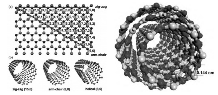 单壁BNNT的构造及构象(左);多壁BNNT的构造及构象(右)