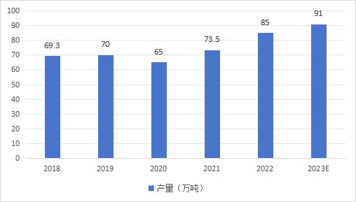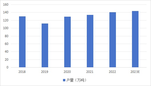 2018-2023年中国环氧树脂产量(数据来源:中商情报网)