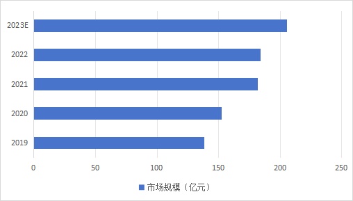 在5G/5.5G基建加速建设及商用化普及加快的背景下,我国导热材料市场高速增长。2022年中国导热材料市场规模约为183.8亿元,同比增长0.99%。2023年市场规模预计可达205.5亿元。