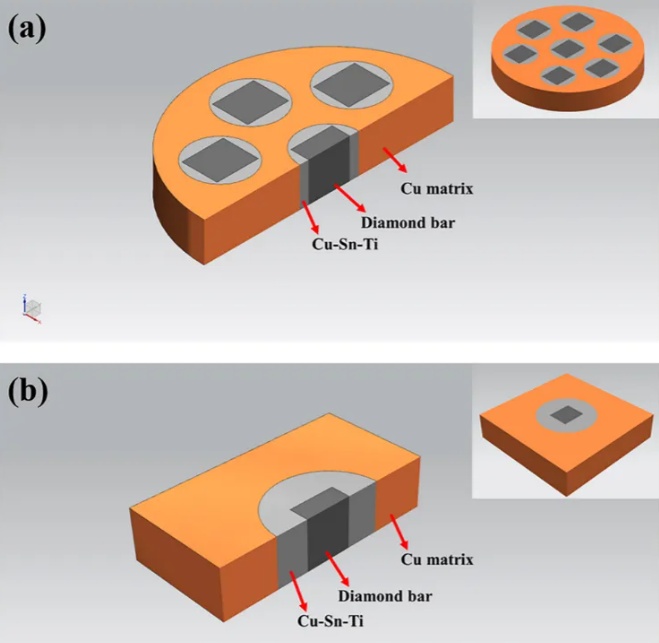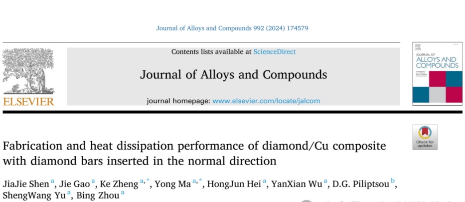 中国粉体网讯 近日,太原理工大学材料科学与工程学院马永等在Journal of Alloys and Compounds上发表题为“Fabrication and heat dissipation performance of diamond/Cu composite with diamond bars inserted in the normal direction”(法向镶嵌金刚石棒的金刚石/铜复合材料的制备及散热性能)的文章。该研究设计了一种高导热的新型金刚石/铜复合材料。