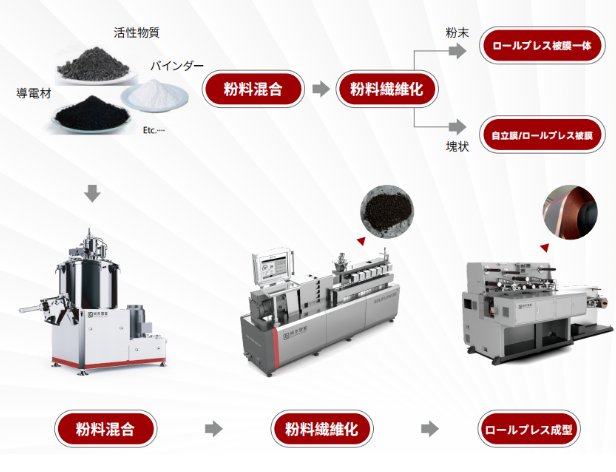 Among them, to achieve uniform mixing and coating of powders, equipment such as the Dual-drive Coating Machine launched by Shangshui enables low-temperature and high-speed mixing. The Twin-screw Extruder, which utilizes twin-screw mechanisms and other materials for shearing, ensures uniform and stable control of PTFE fibrillation. Additionally, the Multi-stage Calendering & Laminating Integrated Machine, which integrates multiple functions, facilitates self-supporting film forming and winding, single-sided or double-sided laminating, and double-sided electrode compaction.