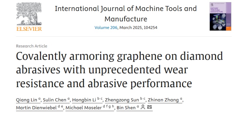 中国粉体网讯 近日,上海交通大学沈彬教授课题组在高性能磨粒领域取得了重要进展,该课题组在机械顶刊《International Journal of Machine Tools and Manufacture》发表了题为“Covalently armoring graphene on diamond abrasives with unprecedented wear resistance and abrasive performance”的研究论文,通过石墨烯以共价键界面装甲金刚石磨粒,首次实现了传统磨粒物理性能极限的突破。该研究不仅提升了传统磨粒的耐磨损与抛光性能,也为基于液态金属催化的微/纳米颗粒表面原位改性提供了新的技术方案。