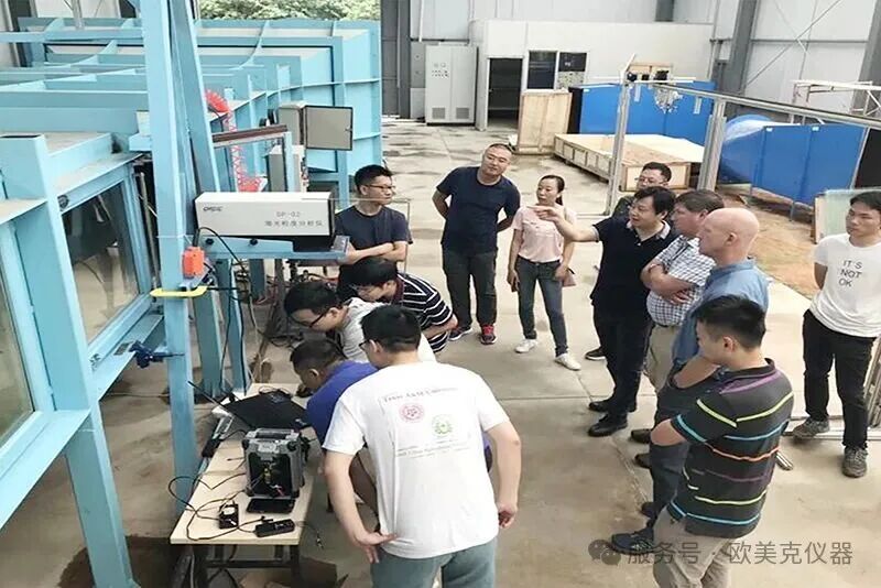 ▲ 国家精准农业航空施药技术中心向国外专家展示风洞实验室及欧美克DP-02喷雾粒度仪
