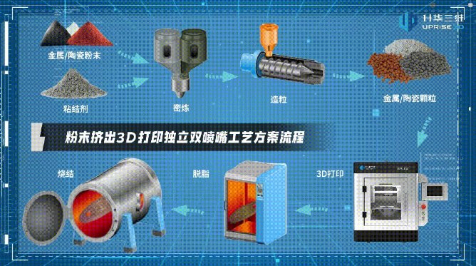 除了基础材料研究,UPS-130还为高校科研提供了“从实验室到应用”的衔接能力。如在核工业科研方向,科研团队可利用其打印“钨+纯铜”的极端环境导热构件,以测试不同结构对散热性能的影响;在生物医疗科研方向,可探索“羟基磷灰石-氧化锆”复合陶瓷的3D成型工艺,为骨修复材料研发提供实验支撑。更重要的是,升华三维提供的PEP技术工艺链(含密炼机、脱脂炉、烧结炉),让高校无需额外配套设备,即可实现“材料制备-3D打印成型-烧结制品”全流程实验,避免了因设备适配问题导致的研发中断。