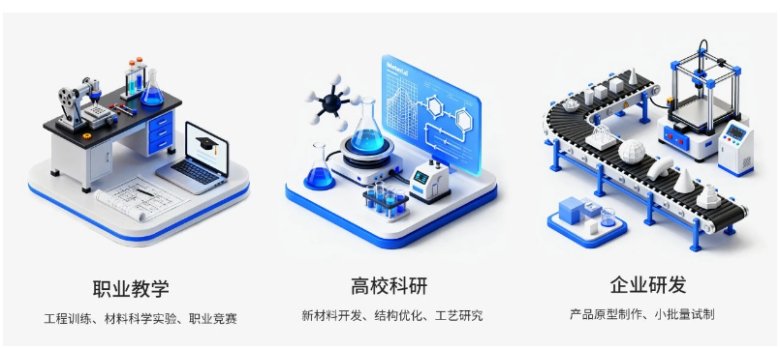 对于高校教学而言,UPS-130的桌面级设计也让“材料创新实践”走进课堂。以往工业金属/陶瓷3D打印实验更多的是面向研究生开展,而UPS-130的低成本与便捷性,可支持本科生和职业技术学生开展复合材料成型实验:学生通过各种复合打印功能,直观理解材料复合原理;磁吸成型平台能快速拆卸生坯,便于观察打印缺陷。这不仅填补了高校材料学科实践教学的空白,更能激发学生的创新思维,为特种材料领域培养应用型人才。