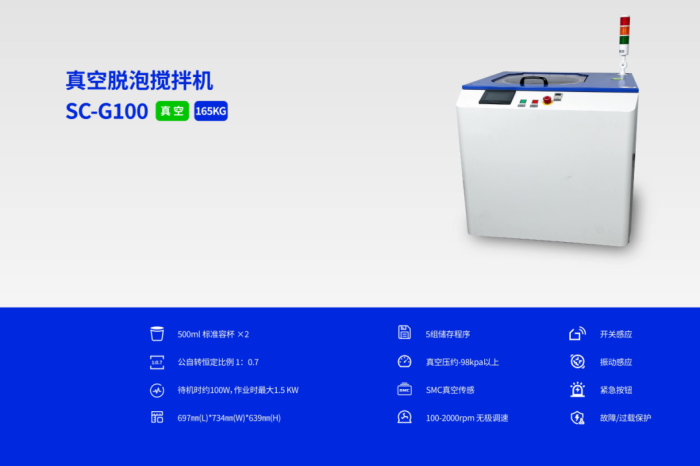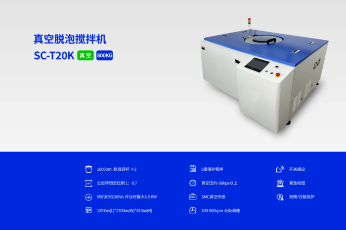 1.创新的技术集成。融合了真空技术、精确搅拌控制技术、高粘度处理技术和非接触搅拌技术等多项前沿科技,实现了卓越的搅拌和脱泡效果。