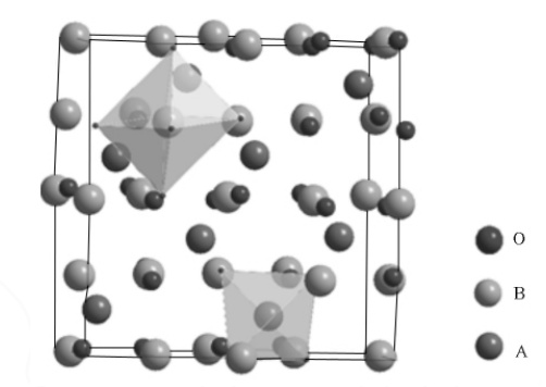 尖晶石晶体结构属于立方晶系Fd-3m空间群,通式为AB2O4,尖晶石晶胞有24个阳离子,32个阴离子。一般A离子是+2价的阳离子,B离子为+3价的阳离子,但也有少数A离子是+4价的阳离子,B离子为+2价的阳离子。在正尖晶石结构中,A离子占据四面体位中心,B离子占据八面体位中心;在反尖晶石中,A离子占据八面体位中心,50%的B离子占据四面体位中心,50%的B离子占据八面体位中心;在混尖晶石中,既有正尖晶石的部分也有反尖晶石的部分。