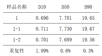 Bettersize2600对两个不同规格的样品采用湿法“SOP一键测试”功能,以水为介质、吐温为表面活性剂、其中激光粒度仪测试物质折射率选择为1.74、介质折射率1.33、搅拌速度1600转/秒、内置超声5分钟、每个样品测试3次,结果如下图所示。