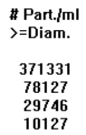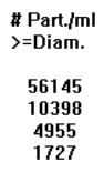 进一步通过定量的检测数据来比对,调取出颗粒数量的检测结果,并将其自定义区分为四个数据通道(仪器一共可以512个数据通道进行分析)——大于0.99微米、大于2.01微米、大于5.02微米以及大于9.99微米。