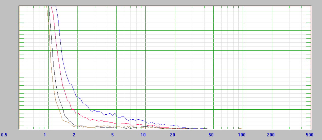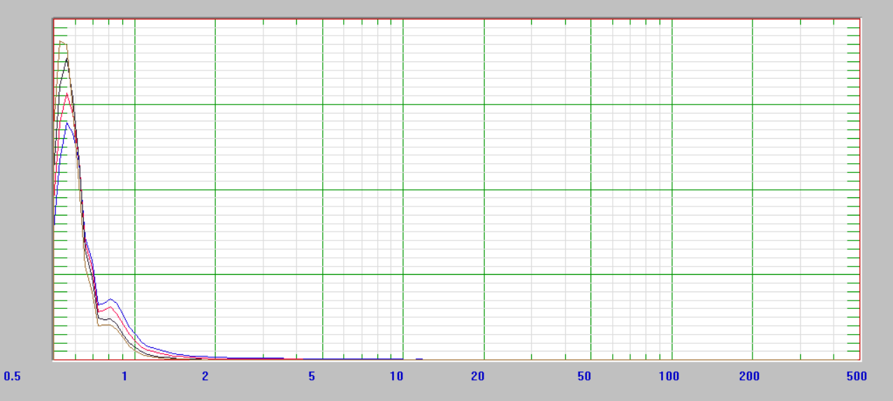 我们将均质前后的Pt/C催化剂使用AccuSizer 780 A7000 AD全自动颗粒计数仪进行颗粒数量分析,其结果展示了在经过PSI-20高压微射流均质机处理前后催化剂“尾端”粒径分布发生的有趣变化:(横坐标为粒径,检测范围:0.5μm-400μm,纵坐标为颗粒数量)