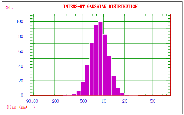 图1. Nicomp 380/ZLS对某乳剂样品的光强径高斯分布谱图