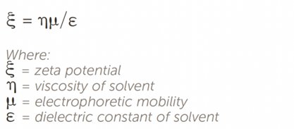 zeta 电位测量的主要结果是电泳迁移率 μ,然后使用以下公式计算 zeta 电位: