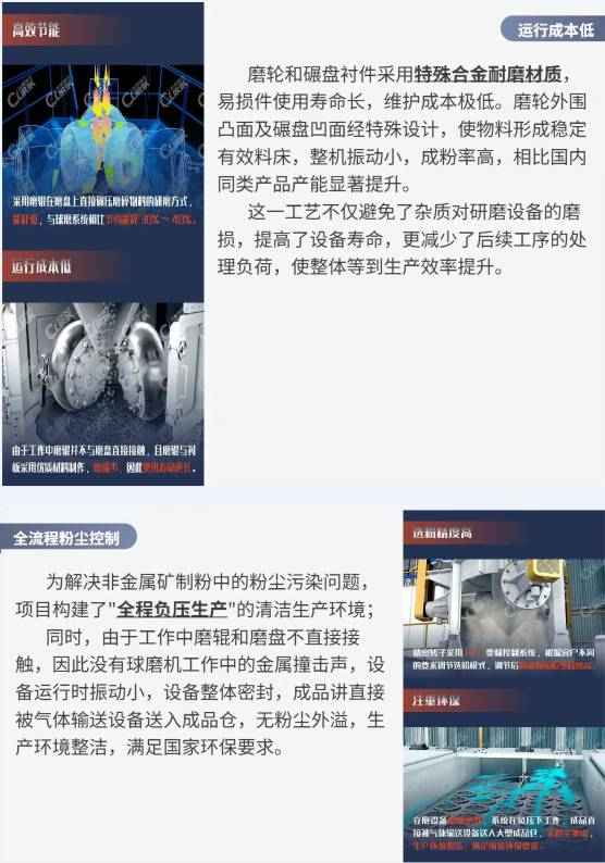 项目树立了非金属矿加工行业的绿色制造标杆。在"双碳"目标背景下,行业企业需加快推进工艺革新和设备升级,将绿色理念贯穿于生产全过程,实现经济效益与环境效益的双赢,这也是粉体行业可持续发展的必由之路。