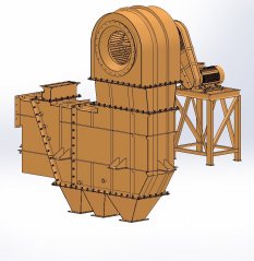 下部为静态选粉机,内部无传动部件,主要是由一组呈梯级形状平行排列的栅板所构成。待分选的物料成梯形泻落在梯级上,梯级上有分选气流通过,气流将细粉从物料中分离出来,并将其输送到细粉出口,上部为转子选粉机,用于隔离粗细粉。通过调节分选气流可以调节排出粗料和细粉的粒度分布和流速。此外,针对石料或石屑含泥量高,需去除泥土时,能在机内增加擦洗装置,对石子表面的泥土进行干式擦洗和分离,以获得干净的石子和机制砂。