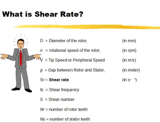 – 剪切速率 (s-1) = v 速率 (m/s) g 定-转子 间距 (m)