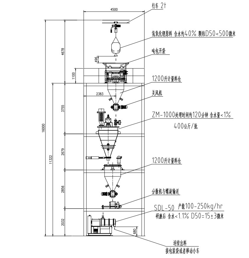 (1)目前高镍三元正极材料产业化过程中的技术难点之一,是原材料氢氧化锂的预处理问题。采用我们独特的干燥-粉碎-计量一体化设备,能够为客户提供粒度分布更窄、更容易混合、成本更低的产线;