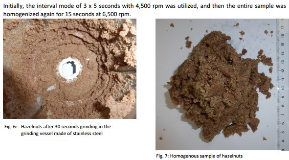 我们用P11磨了800g的榛子样品,研磨结果满足后续检测的需要。