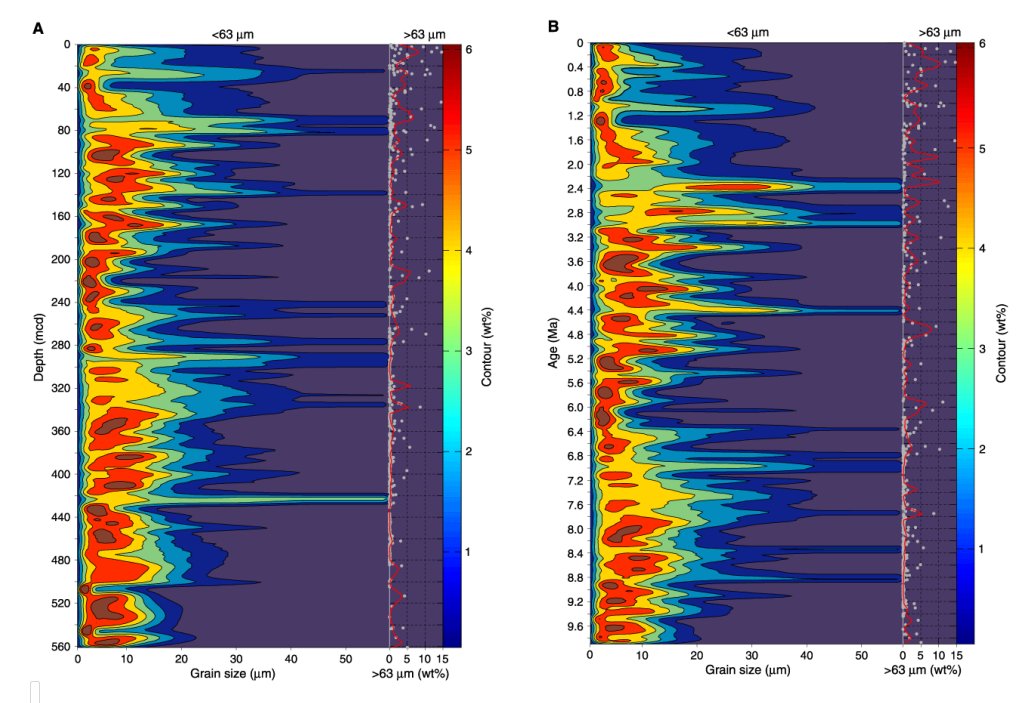 研究人员将不同深度的海底污染物取样后,63μm以上的颗粒使用筛分分级,63μm以下的颗粒使用激光粒度仪进行粒度分布的分析。再对各个粒度等级、各个垂直深度的颗粒分别进行污染物检测。