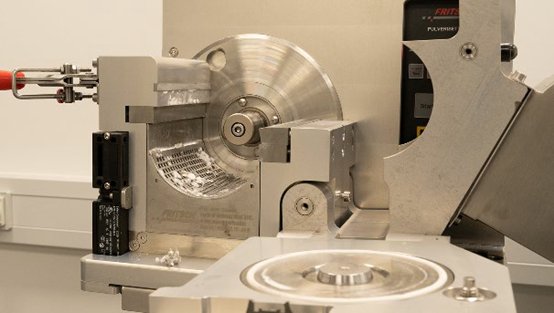 在第二项测试中,将一部分来自PULVERISETTE 19 LARGE的预粉碎样品在PULVERISETTE 14 加强型中进一步处理。在38秒内将200毫升样品粉碎至最终细度<500 µm。