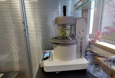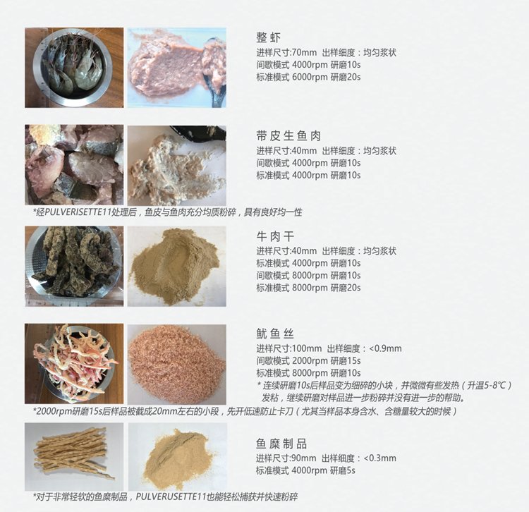 此时不得不介绍一下,此次试验的得力干将,FRITSCH刀式研磨仪P11,是一款理想的实验室样品混合设备,可对于湿润、油性和脂肪类样品,以及干燥、柔软、中等硬度和纤维状样品进行快速温和的粉碎与均质化。