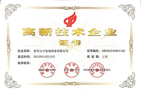 山立包装设备公司被认定为“国家高新技术企业”