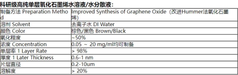 根据碳丰科技官方产品资料显示:氧化石墨烯水分散液的目数为2,氧化石墨烯水分散液的型号是WGO02 7440-44-0,品牌为碳丰。