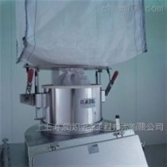 大袋拆包卸料机将吨袋包装物料提升到进料口,人工将包装袋的下料口解开后,打开流量控制阀和附带的振动下料装置促使包装袋内的粉粒状物料通过自重落到下方的料斗中。