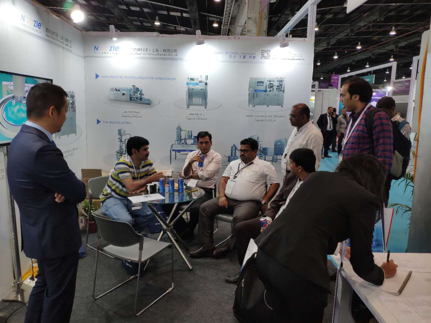 由于我司在印度积累了大量的制药客户,本次CPhI India有很多来自印度本地的客户前来咨询。我司技术人员现场为客户讲解有关超微粉气流粉碎机及微射流均质机的应用及客户在药物微粉化中遇到的技术问题!