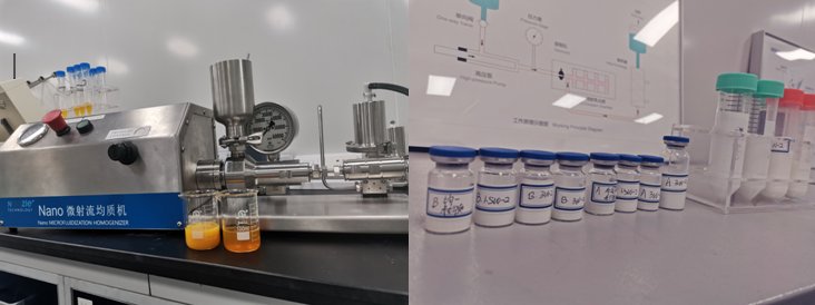 技术中心配备高剪切设备和旋蒸仪,可以进行初乳的制备。同时,微射流均质机配备Y型腔、Z型腔、一字型腔体,可满足不同剂型的均质与分散,为制剂的技术开发提供了更多的可能性。