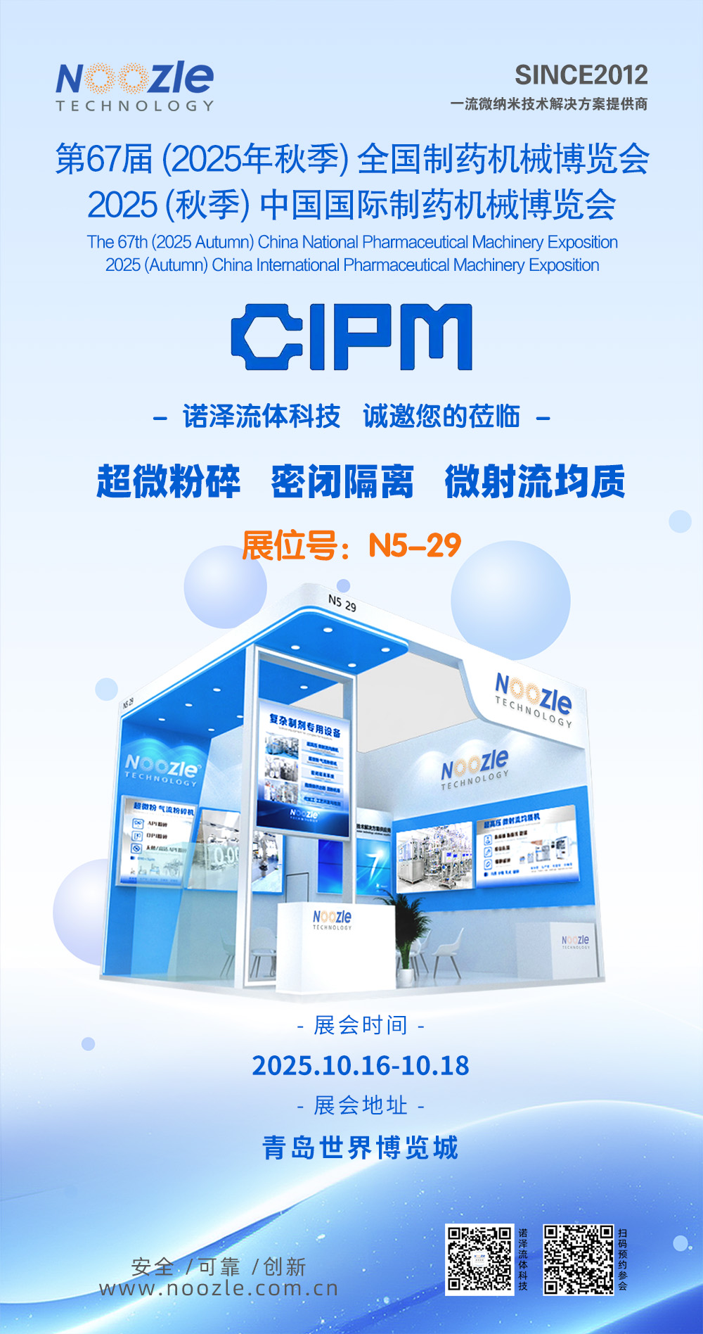 本次CIPM,诺泽依然将与旗下超微气流粉碎机、微射流均质机等多款明星产品等一同亮相展台,静候新老朋友的光临!
