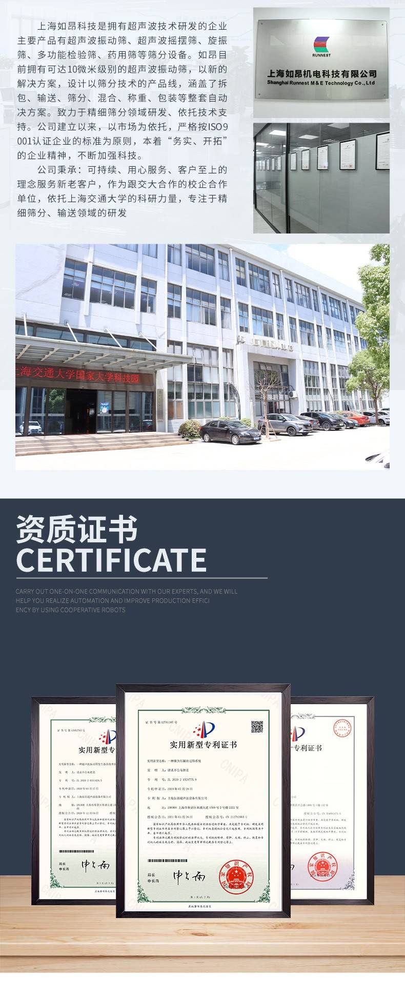 上海如昂机电科技有限公司为您提供Runnest如昂直径600超声波摇摆筛,如昂直径600超声波摇摆筛产地为上海,属于其他分级设备,除了如昂直径600超声波摇摆筛的参数、价格、型号、原理等信息外,还可为您提供不锈钢螺旋上料机、如昂直排式振动筛分机、浆料机浆料过滤机自动浆料过滤机。