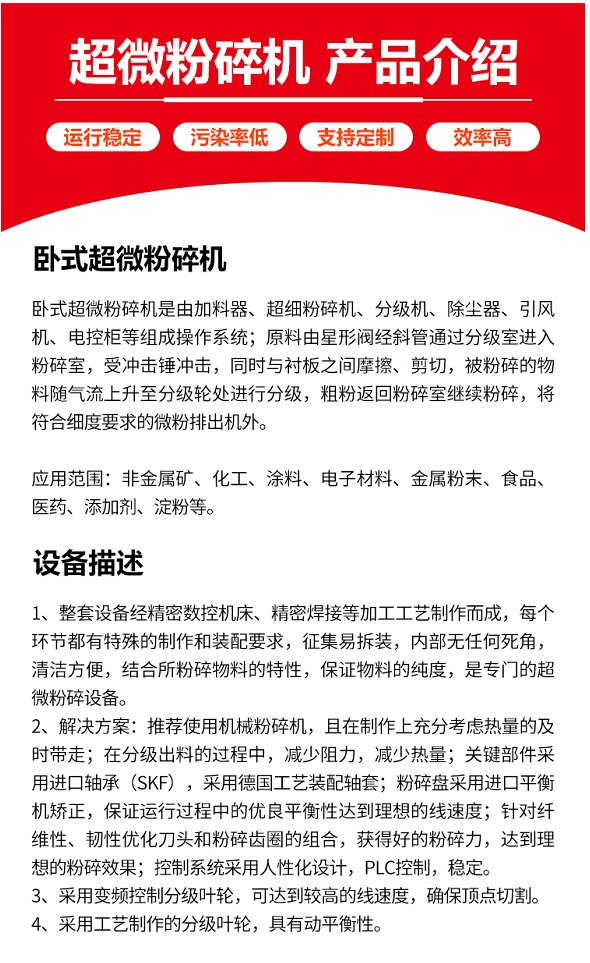 粉碎程度:超细粉碎