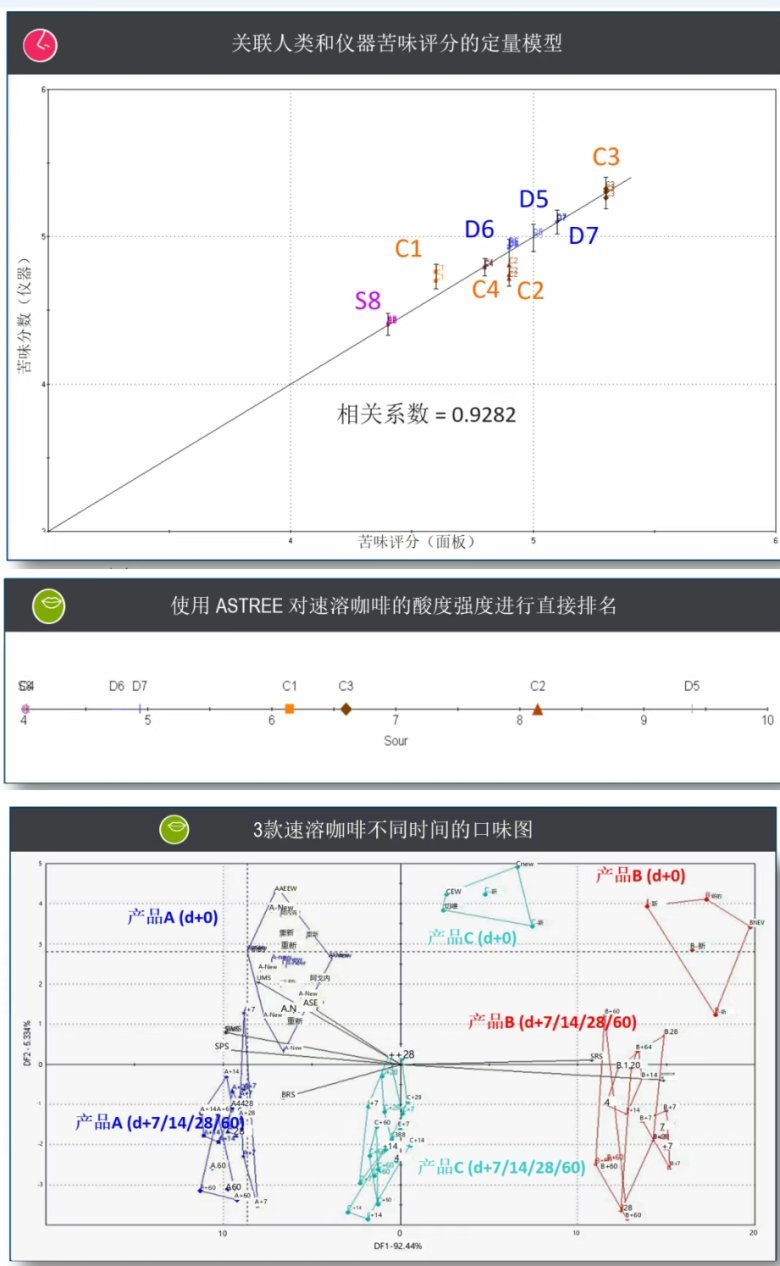 《指导原则》强调了口感设计在儿童药物开发全生命周期(从处方前研究到上市后变更)中的重要性。它要求申请人: 重视口感属性:明确要求评估药物的基本味道(苦、甜、酸、咸、鲜、涩等)、嗅觉(气味)、口腔感觉(涩感、灼烧感、沙粒感、油腻感等)以及余味。 科学评价方法:鼓励采用客观、灵敏、可量化的评价手段,结合必要的人体感官评价(需符合伦理),建立科学的口感评价体系。 高效筛选掩味策略:强调需要系统性地筛选和应用掩味技术(如包衣、添加矫味剂、形成复合物等),并对掩味效果进行科学验证。 关注儿童特异性:指出儿童的味觉感知与成人存在显著差异(如对苦味更敏感,对甜味偏好更强),评价需考虑年龄差异。 一、速溶咖啡感官分析的挑战:人鼻的局限与需求 二、电子鼻登场:嗅觉的“科学之眼” 三、电子鼻在速溶咖啡中的核心应用与价值 清晰展示了电子鼻分析下香气/苦味/酸度随品牌或时间变化的显著差异和趋势。 四、超越感官:电子鼻带来的变革性意义 电子鼻在速溶咖啡感官分析中的应用,其意义远不止于提供数据: 提升品质管控精度与效率:从原料进厂、生产过程监控(如烘焙终点判断、风味均匀性)、到最终成品检验、包装评估,实现全链条快速、客观的感官指标监控,确保出厂产品品质稳定如一。 驱动产品创新与优化:基于精准的风味数据,研发人员可以更有的放矢地调整配方、工艺,开发出更符合目标消费者口味的新品,或优化现有产品。 保障品牌声誉与消费者信任:通过科学手段确保风味一致性,有效应对掺假质疑、保质期投诉,维护品牌形象。 决策支持的科学化:无论是选择包装材料、设定保质期、还是进行产品定位,电子鼻提供的客观数据都是管理层做出更明智决策的有力支撑。 标准化与合规性:为感官评价建立可量化的标准,有助于满足日益严格的食品安全和品质规范要求。