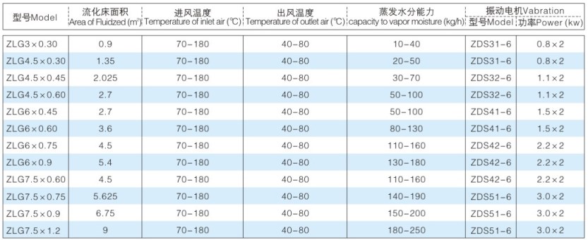根据震华干燥官方产品资料显示:ZLG系列振动流化床的型号是ZLG系列,品牌为震华干燥。