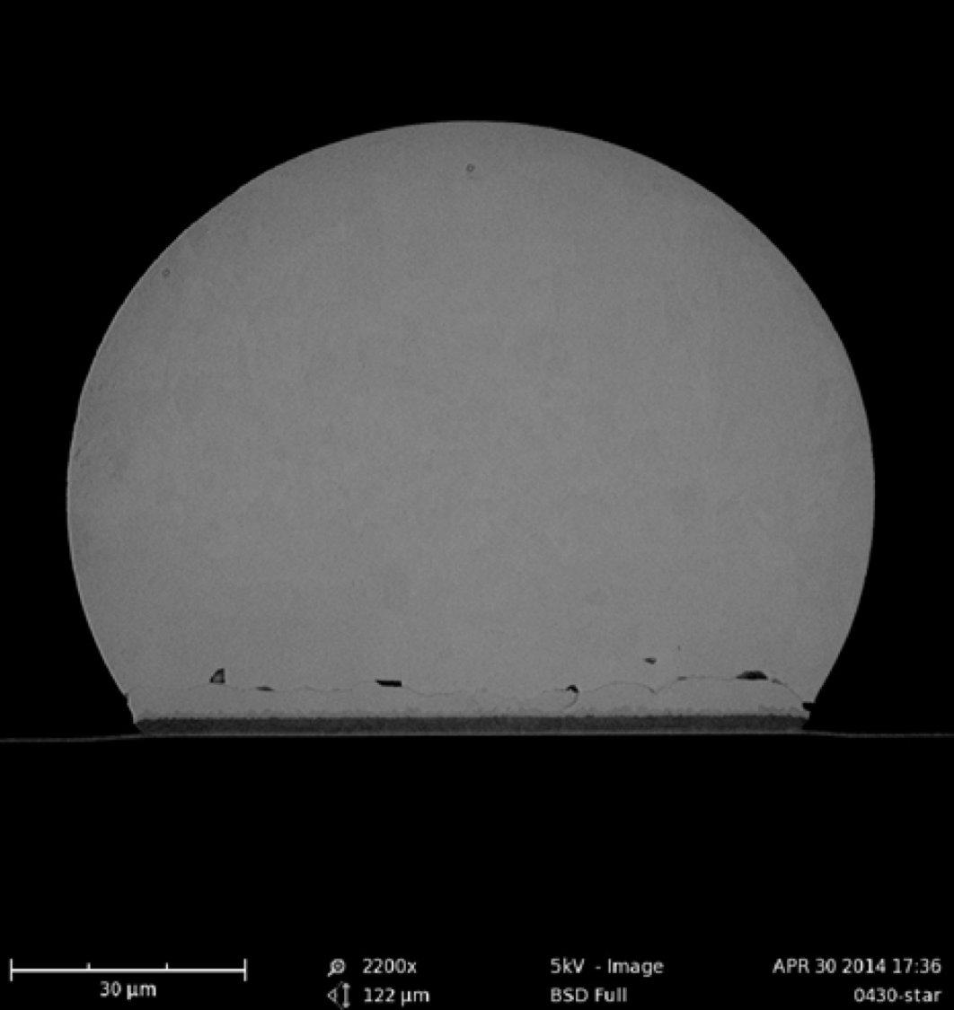 说明:如果不使用离子研磨仪,就无法用扫描电镜观察到锡球焊接处的缺陷