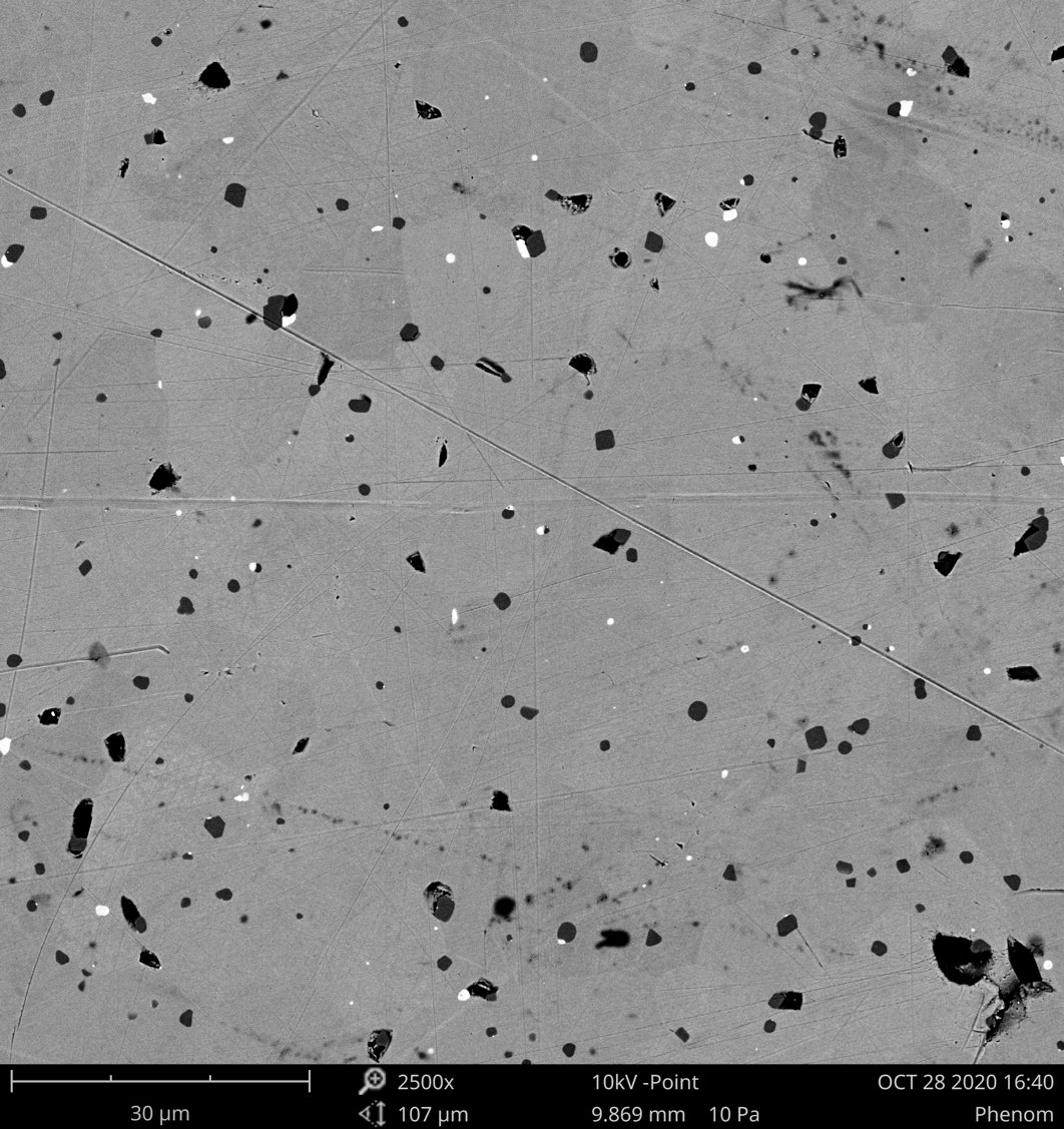 Technoorg Linda 离子研磨仪处理铝合金表面后,使用飞纳台式扫描电镜能谱一体机,即刻就能分析铝合金材料表面的形貌和成分。夹杂是铸造铝合金中普遍存在的问题,夹杂物的检测对于铸件的质量控制非常重要。