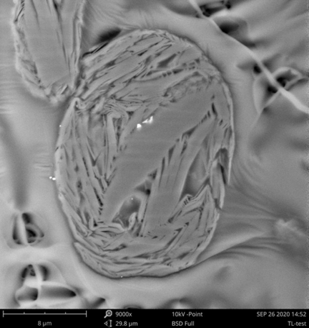 锂电池负极石墨颗粒——使用 Technoorg Linda 离子研磨仪切开负极材料粉末颗粒(飞纳台式电镜拍摄)