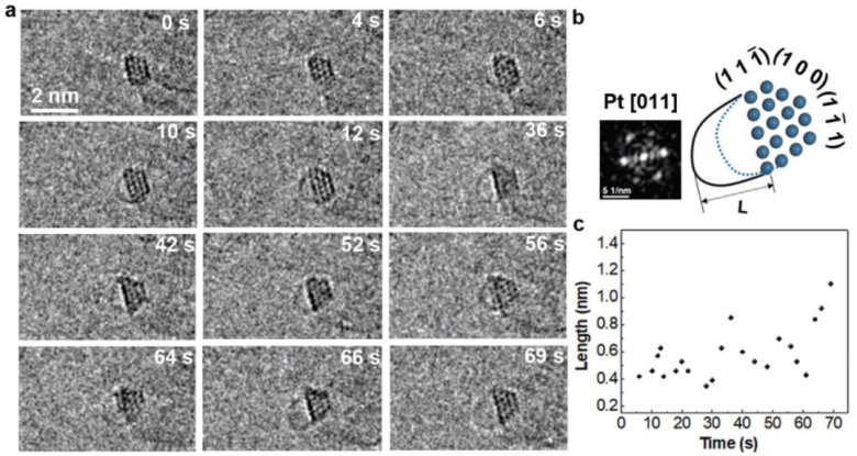 摘要:通过引入局部原子结构变化所获得的单壁碳纳米管(SWCNT)并不是对称生长的,这往往不可避免,且会对手性控制和性能定制产生深远影响。然而,SWCNT 生长过程中的对称性破坏机制仍然未知,其原子尺度的起源也无从得知。该工作中,ETEM 用于实时捕捉铂纳米颗粒催化生长的 SWCNT 的对称性破坏过程,证明了 SWCNT 侧面形成的拓扑缺陷可以缓冲应力释放,并从本质上破坏了轴对称生长。原子级细节揭示了纳米管-催化剂界面的重要性以及界面周围固态铂催化剂的原子重排如何影响最终的管状结构。理论模拟证实,负责捕获碳二聚体并为碳掺入和不对称生长提供驱动力的活性位点是低配位的台阶边缘。