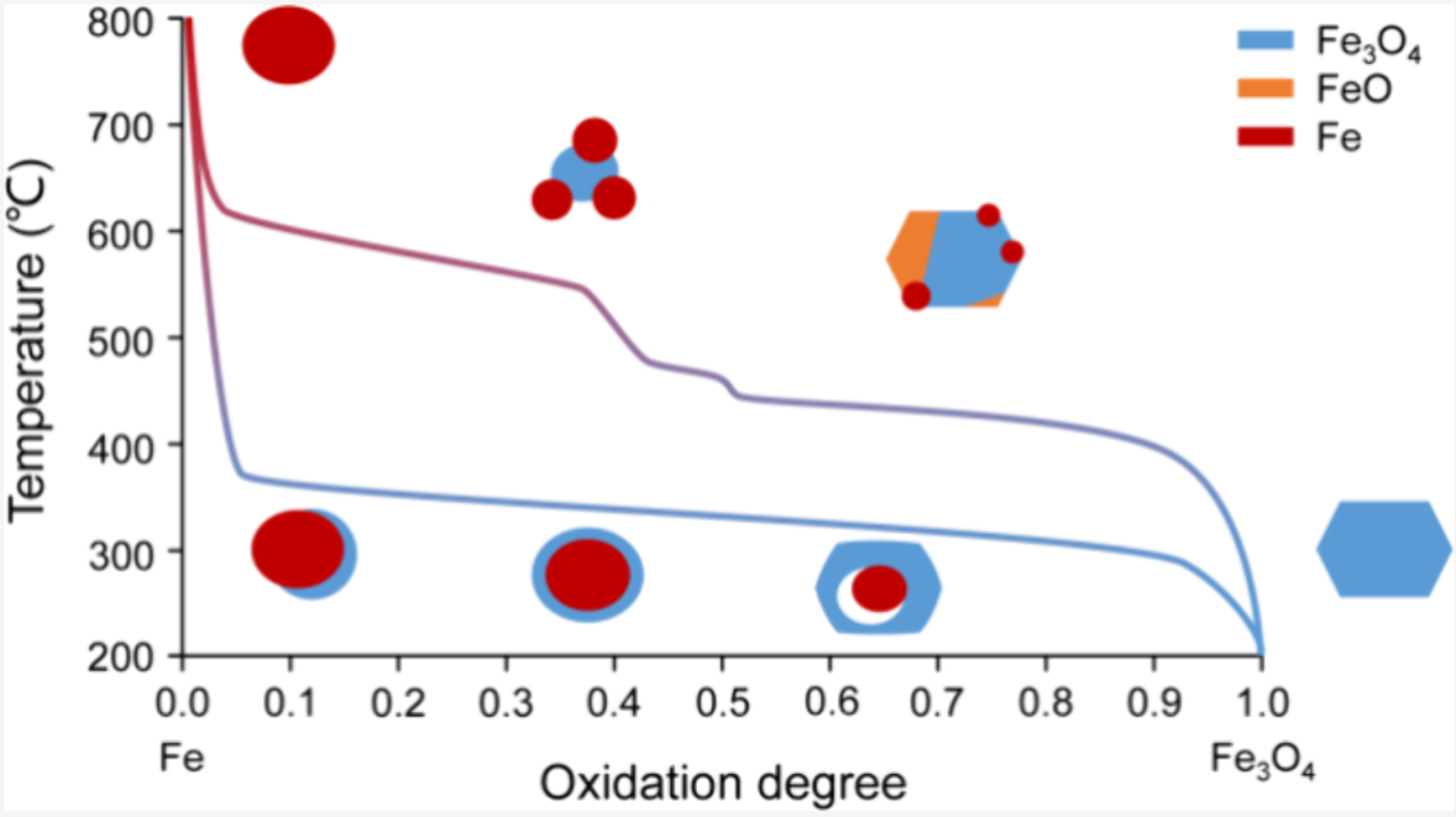铁的氧化还原反应是一种基本反应过程,存在于自然界的许多方面。在地质学中,铁的氧化物主导了与地球内部释放挥发物的氧相互交换,对远古气候演化产生了重大影响。从富铁氧化物矿石中冶炼金属铁的历史,是人类文明发展的基石。如今,功能化铁基纳米颗粒在各行业中(包括电催化、生物催化和热催化)发挥着至关重要的作用。铁基催化剂以其成本效益和环境友好性而闻名,但由于其固有的冲突因素,其活性难以达到适当水平。因此,了解铁氧化物在还原气氛下的结构演变可以为解决这些催化障碍提供新的视角和解决方案。