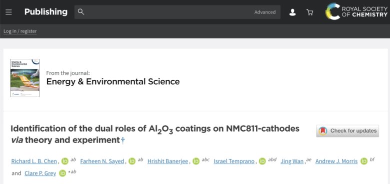 本文由 Clare P. Grey 教授团队完成,通过实验和理论计算相结合的方法,深入研究了 Al₂O₃涂层在 NMC811 正极材料中的作用机制。